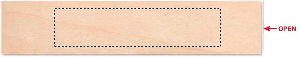 12-teiliges Schreibset in einer Holzbox (2 Bleistifte, 6 Buntstifte, Spitzer, Radierer, Lineal in cm und Inch). Das Lineal dient auch als Deckel.