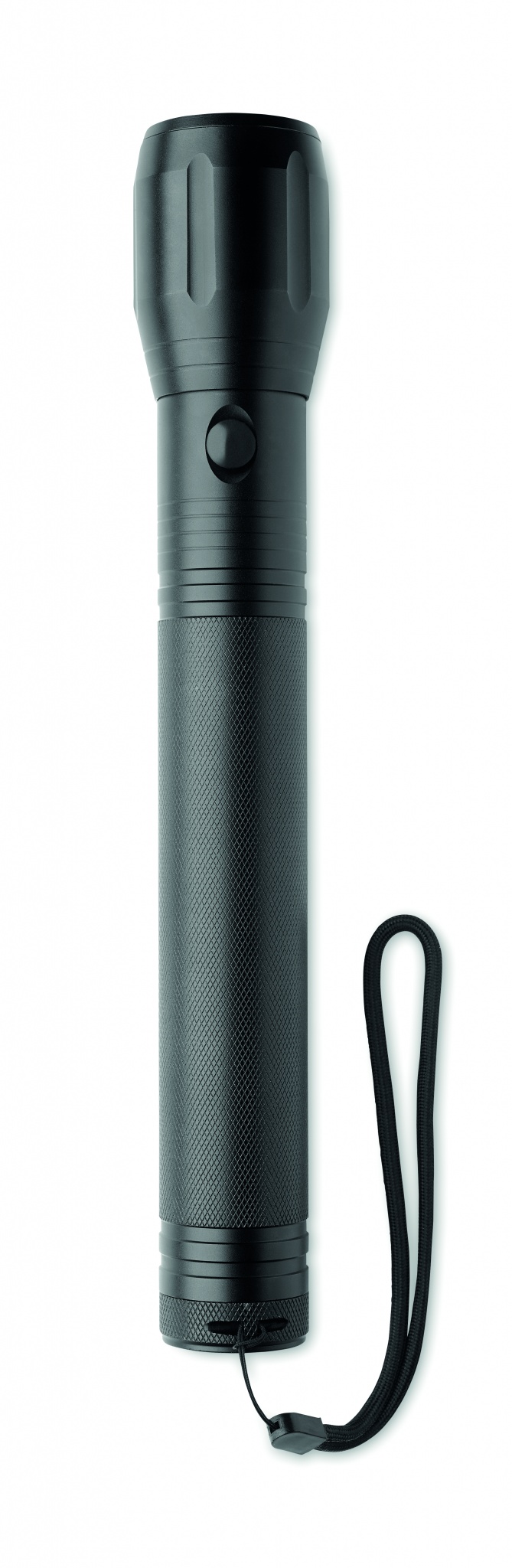 Große zoombare 1-LED Taschenlampe aus Aluminium mit abnehmbarer Schlaufe. Leistung: 300 Lumen. Exkl. 3 Mono D Batterien.