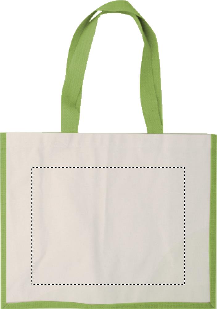 Jute/Canvas Shopping Tasche. Seiten und Boden aus laminierter Jute, Front aus Canvas. Lange Griffe.