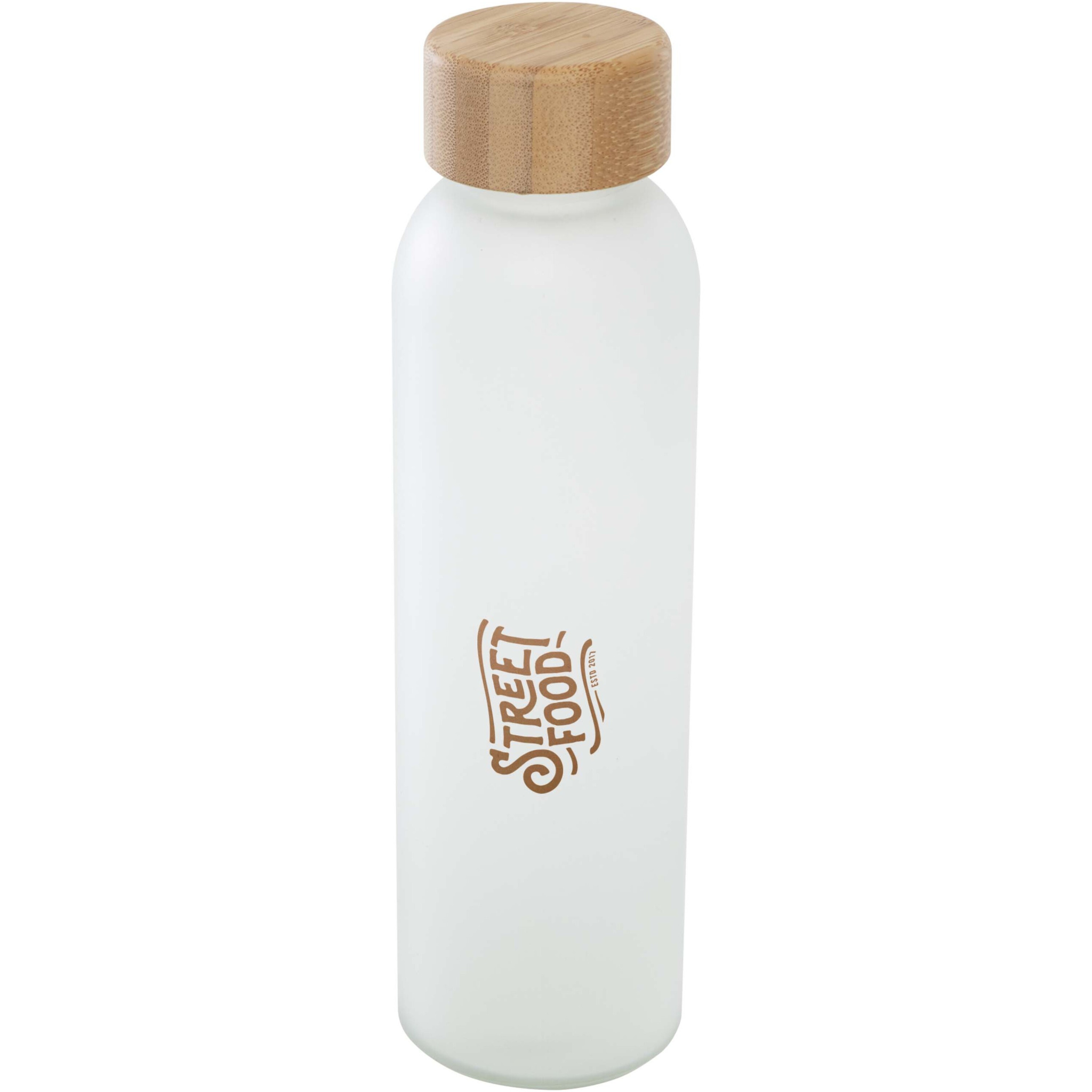 Einwandige 500-ml-Flasche aus mattiertem Kalknatronglas mit Bambusdeckel. Empfohlen für kalte Getränke. Nur von Hand reinigen. Der Bambus stammt aus nachhaltigeren und sozial verantwortlicheren Quellen. Verpackt in einer Geschenkbox aus Recyclingkarton.