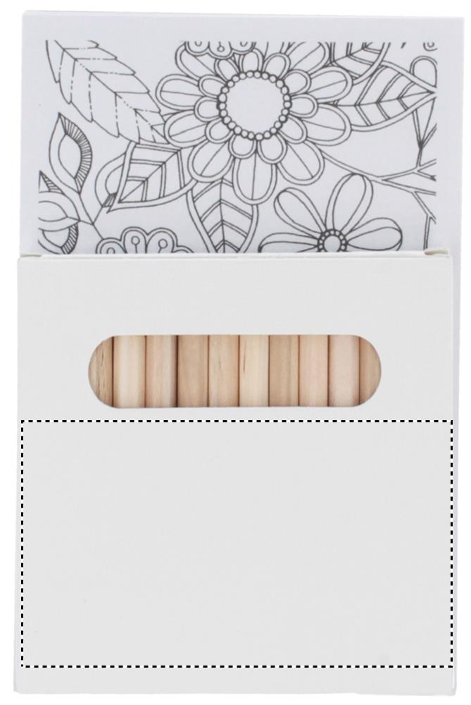 Buntstifte-Set bestehend aus 12 Buntstiften und 10 Karten mit Motiven zum Ausmalen.