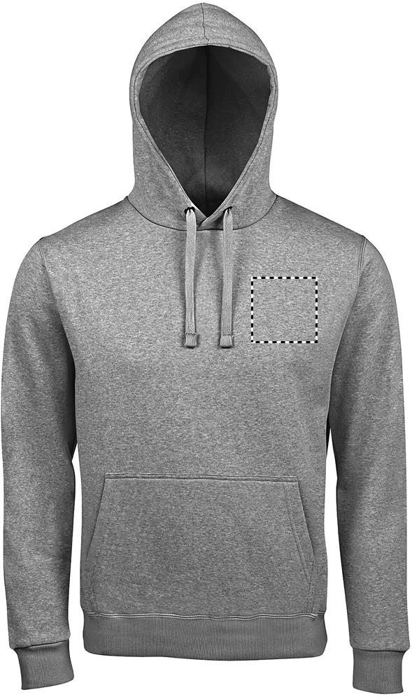 SOL'S SPENCER, HOODED SWEATSHIRT, 80% ringgesponnene Baumwolle - 20% Polyester, gebürstetes Innenfutter, Außenseite: 100% Baumwolle FLEECE 280 LSF (Low Shrinkage Fabric) , Beuteltasche vorne, geschnitten und genäht, gefütterte Kapuze mit Kordelzug, 2x2 Rippenbündchen an Ärmeln und Saum, Halbmondkragen innen, verschweißter Hals. Zur Größenanpassung beachten Sie bitte die Größentabelle im Abschnitt Produktdokumentation.