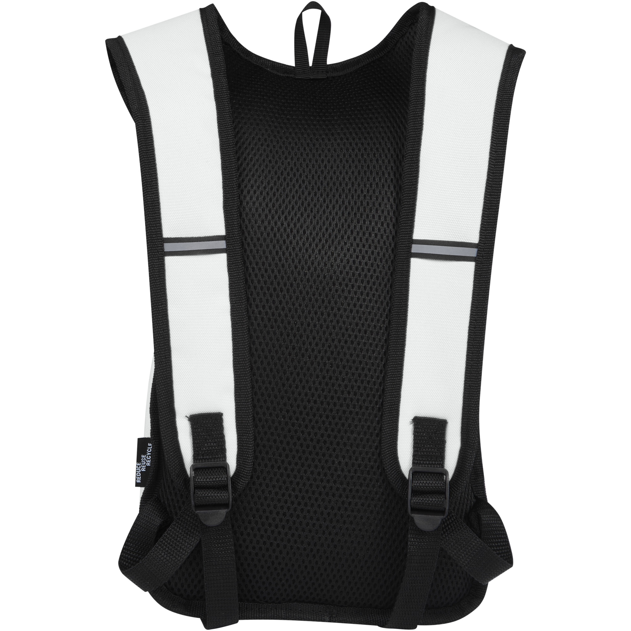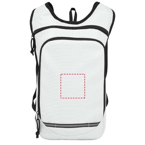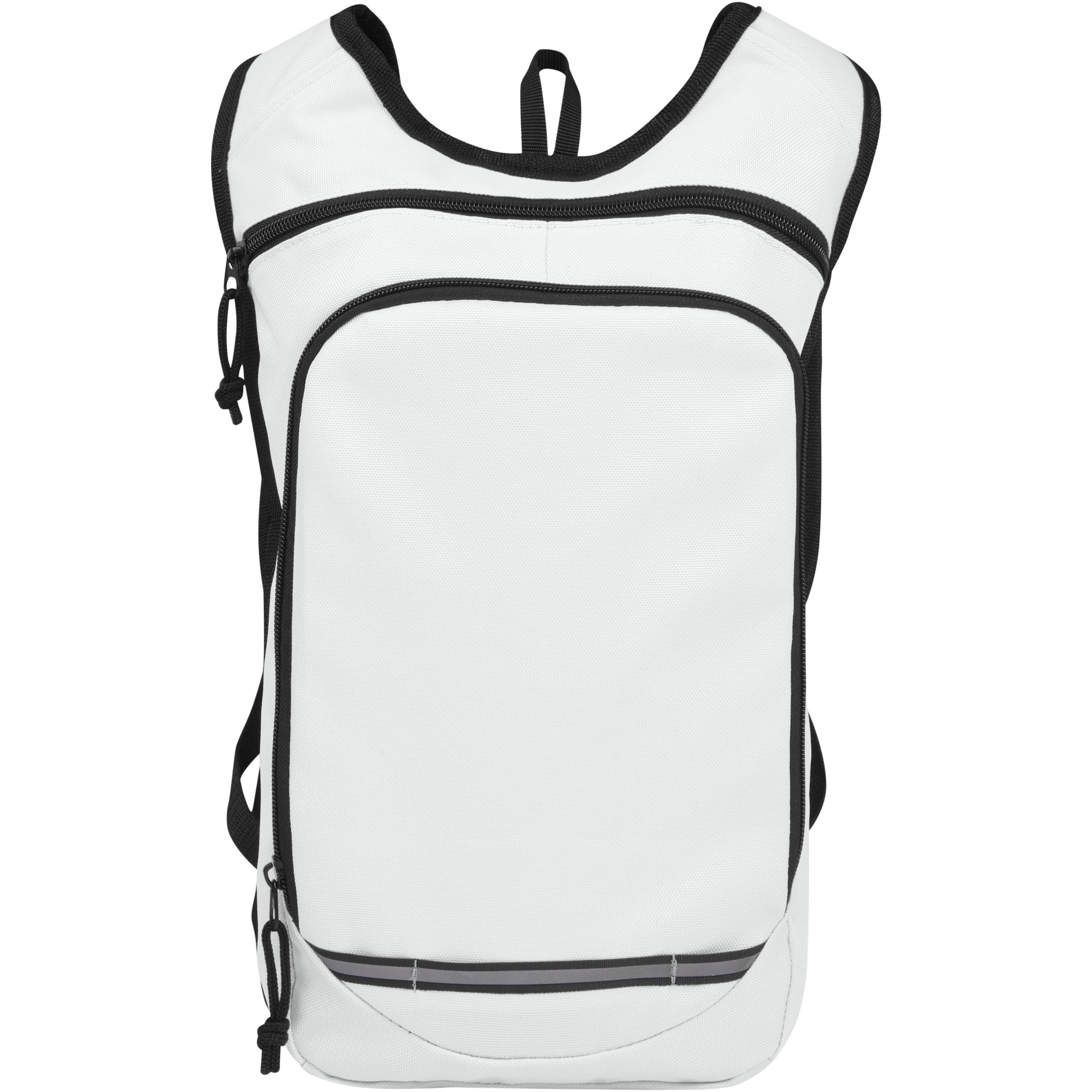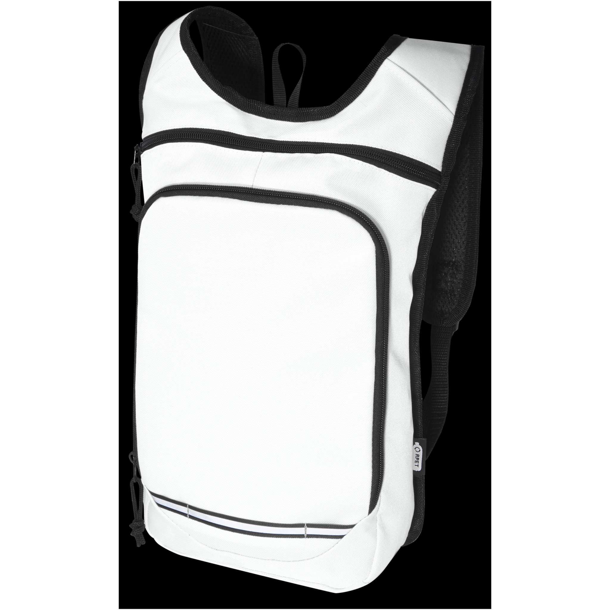 Der Trails Rucksack ist aus 100% GRS recyceltem und wasserabweisendem Stoff hergestellt und verfügt über eine Fronttasche mit Reißverschluss und ein Hauptfach mit Reißverschluss. Kompatibel für eine Trinkflasche. Reflektierende Streifen für bessere Sichtbarkeit und eine Rückseite aus Mesh für mehr Tragekomfort machen ihn zu einer nachhaltigen Wahl für Outdoor-Aktivitäten.