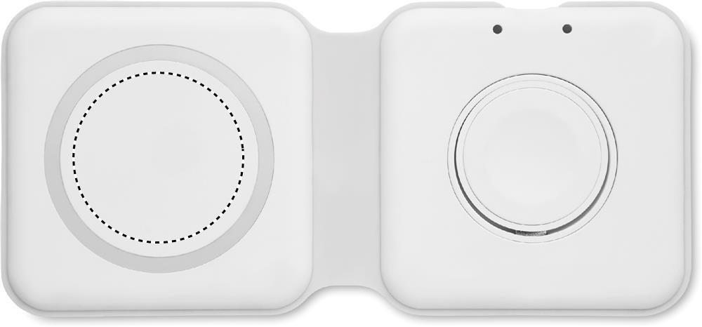 2 in 1 foldable charging station in ABS. It includes a wireless charger 15W and smartwatch charger (Apple®only).