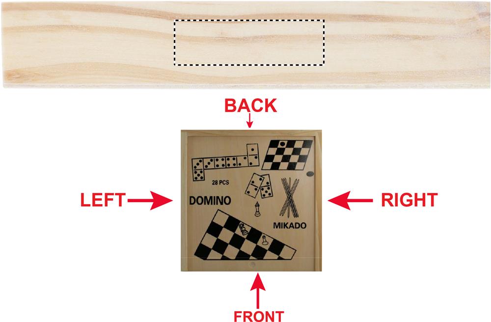 Wooden box including domino, chess, drafts and wooden sticks games.