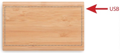 Power bank 4000 mAh capacity in Bamboo casing. Output current DC5V/2A. Includes indicating light and USB cable with Type C plug. In/Output: Type-C. Bamboo is a natural product, there may be slight variations in colour and size per item, which can affect the final decoration outcome.