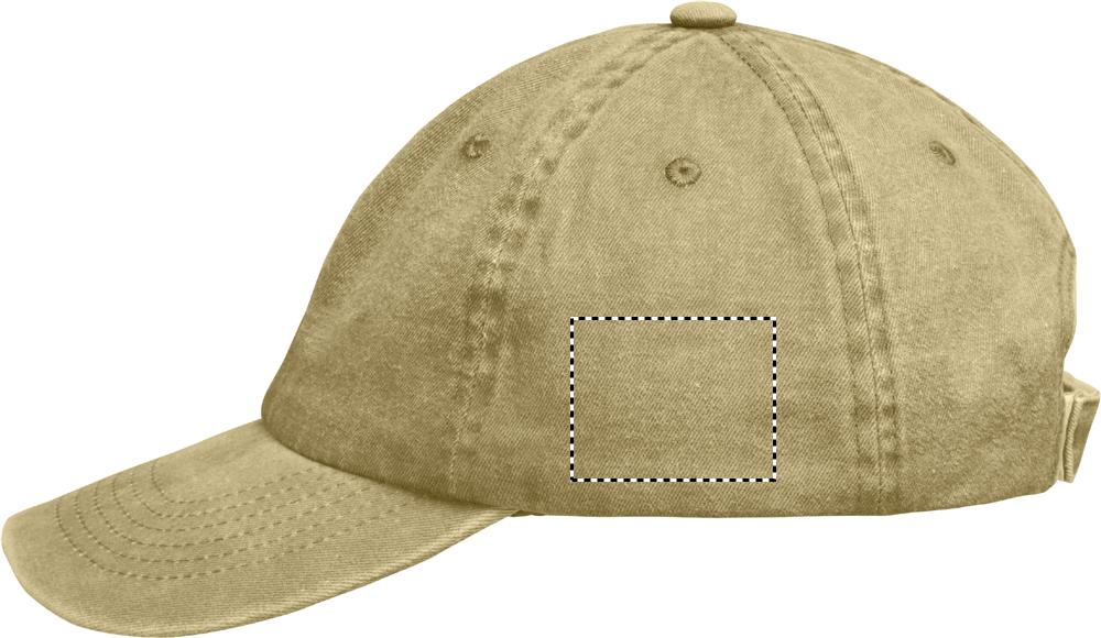 Vintage 6 panel baseball cap in washed cotton. 265 gr/m² with adjustable hook and loop closure. 6 stitched eyelets in matching colour. Size 7 1/4.