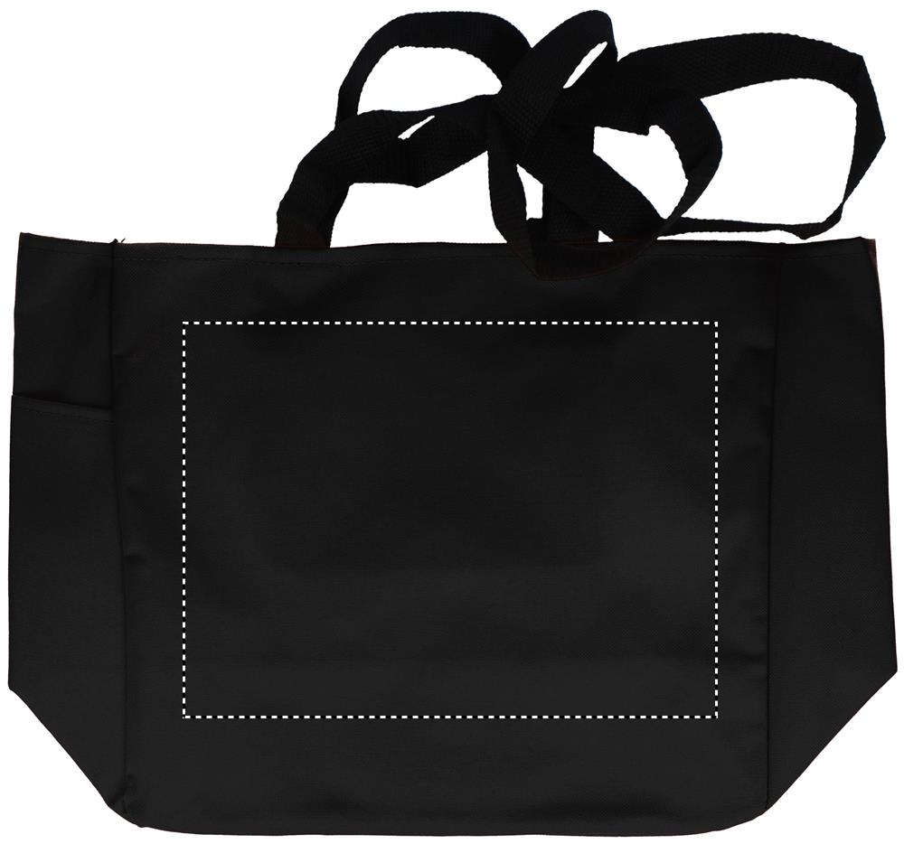 Shopping bag in 600D polyester with side pocket and inside zippered pocket. Long and short handles.