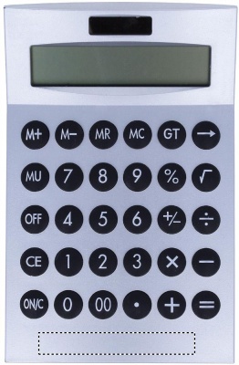 12 digit solar energy calculator with plastic housing. 1 cell battery included.