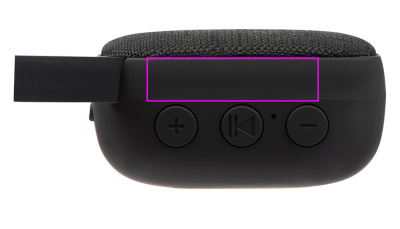 Chic, handy Bluetooth speaker with rubberized housing. Incl. USB charging cable and AUX connector. Battery life approx. 40-70 minutes. We laser your logo on the housing.