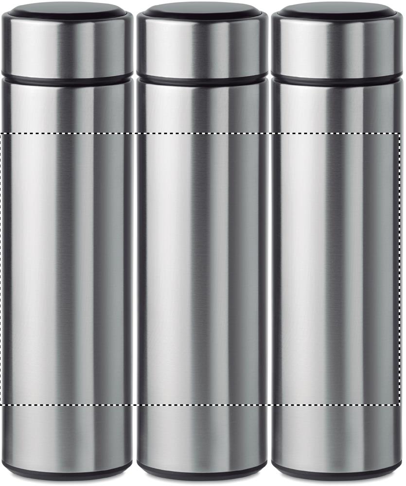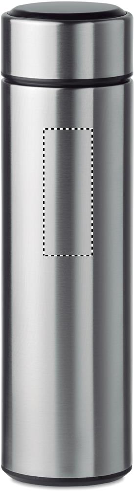 Double wall stainless steel insulating vacuum bottle. It has an LED touch thermometer incorporated in to the top of the lid and tea infuser inside. 1 replaceable CR2032 battery included. Leakproof. Capacity: 450 ml. Leak free.