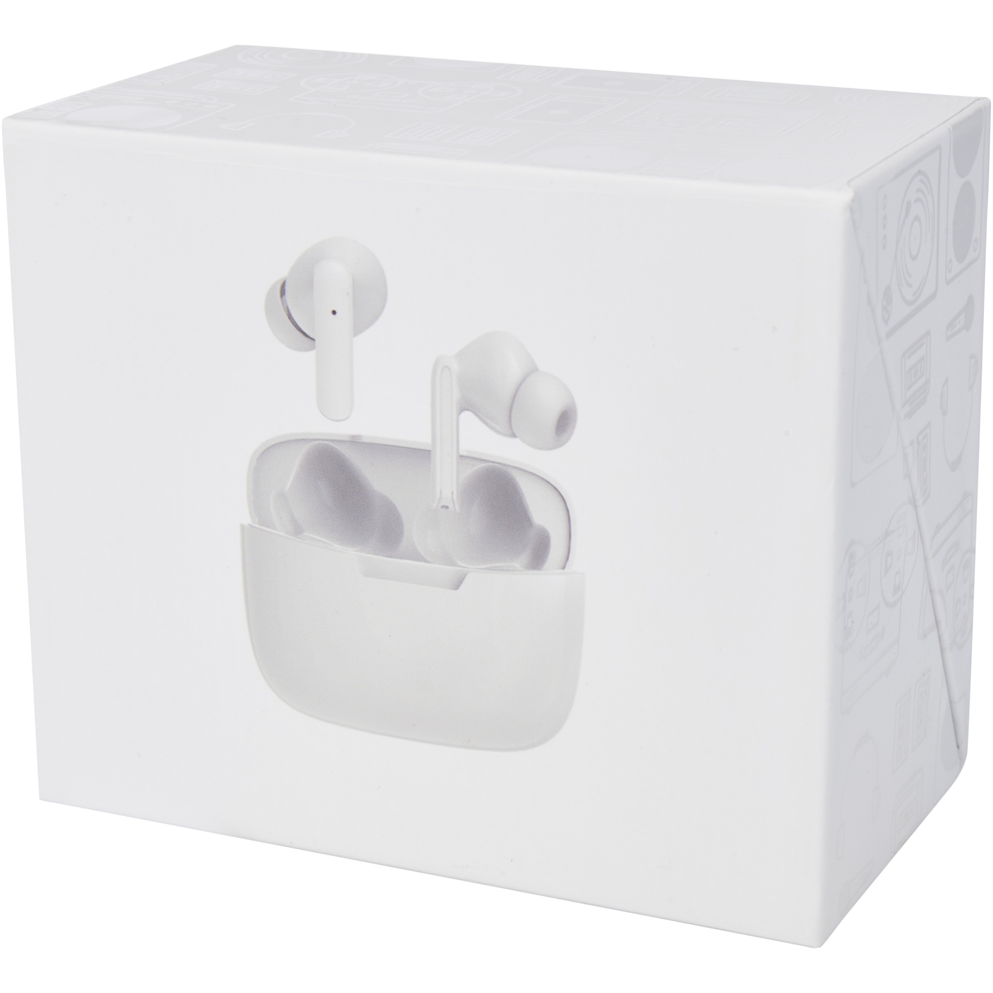 The famous Essos earbuds has got a refresh with this new 2.0 version! A completely new design with the same quality focus in mind. The earbuds feature Bluetooth® 5.3, auto-pairing, and auto power-on. Integrated with transparency function which will enhance the sound surrounding you from outside by built-in programming, enabling you to be aware of your surroundings when wearing earbuds. It's even possible to communicate with people without removing the earbuds. Once the 300 mAh battery of the case is charged, it can charge the earbuds 3 times from 0-100%. With over 3 hours of playback time at max volume on a single charge these earbuds are a must for any traveler. The earbuds supports quick charging. Only 10 minutes of charging provides over 60 minutes of playback time at max volume! The ergonomic design of the earbuds keep them securely in place when on-the-go. Built-in music controls and dual microphones for hands-free operation. The case can be charged in under 1.5 hours. Supports Siri and Google Assistant. Bluetooth® working range is up 10 meters. Delivered in a premium gift box made of sustainable material.