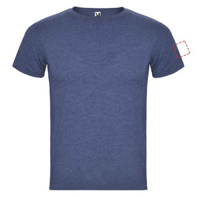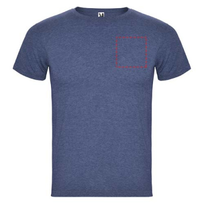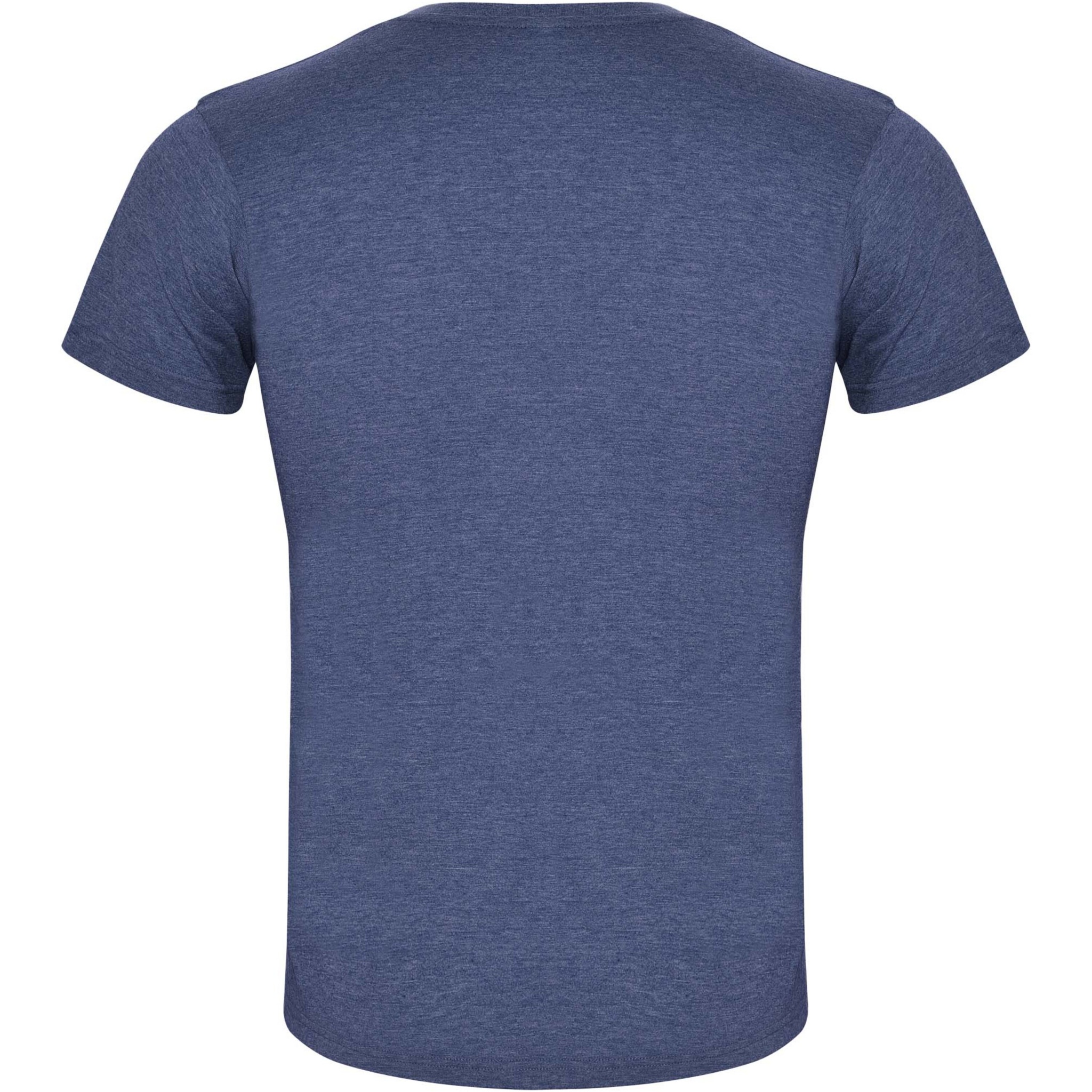 Short-sleeve t-shirt with heathered effect. 1x1 ribbed crew neck with interior reinforced covered seams. Tubular fabric. Removable label.