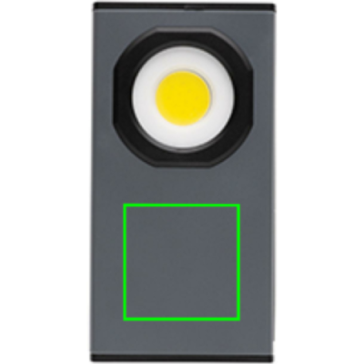 Pocket size work light with super bright COB made with RCS certified recycled ABS plastic. Total recycled content: 36% based total item weight. RCS certification ensures a completely certified supply chain of the recycled materials. The work light uses a re-chargeable A-grade 900 mah lithium battery so no need to replace the batteries. Simply re-charge via your USB socket. The work light comes with 260 lumen COB. With 2 modes:COB and COB 50%. With magnet on the back. With stand function. With type C port for re-charging. Operating time on one charge: 3 hours.