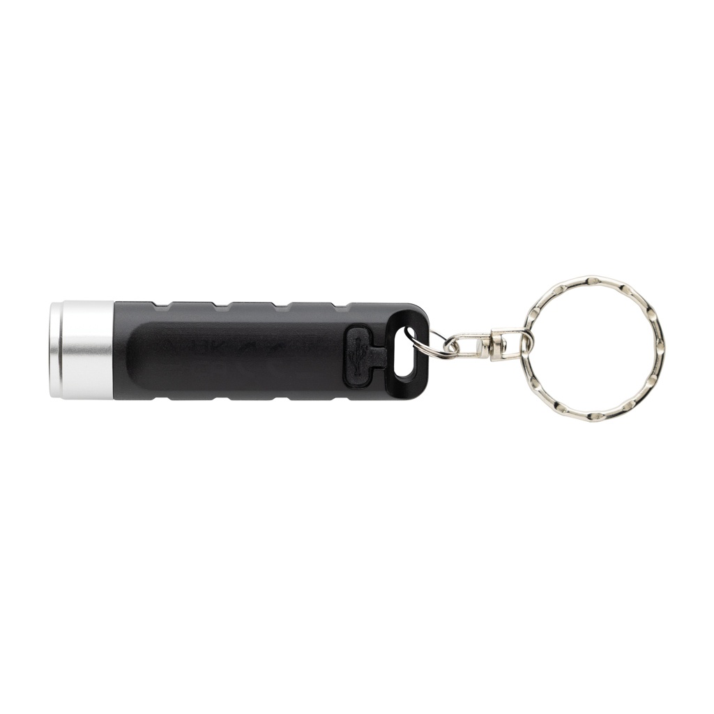 Globix RCS recycled plastic USB re-chargeable keychain torch, black