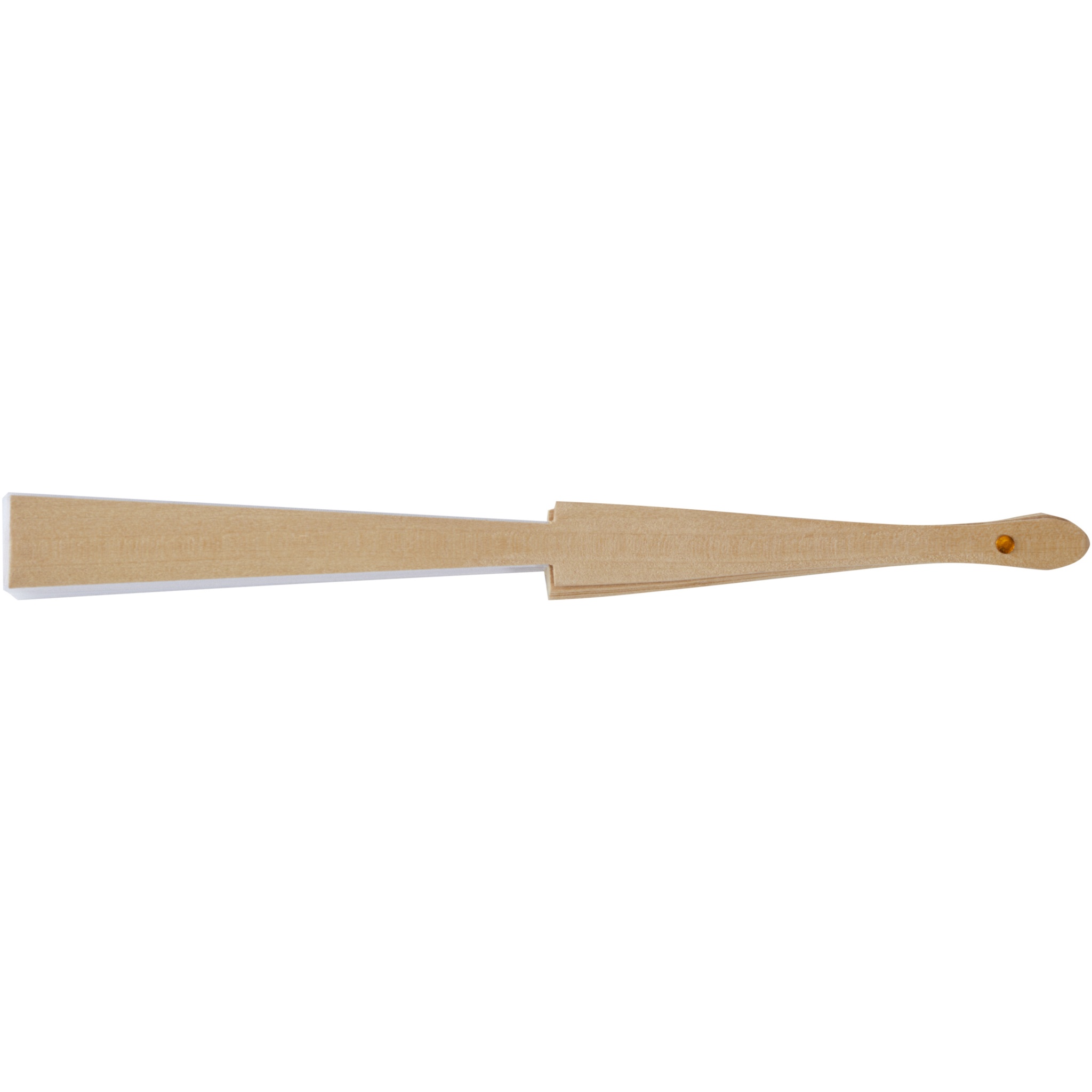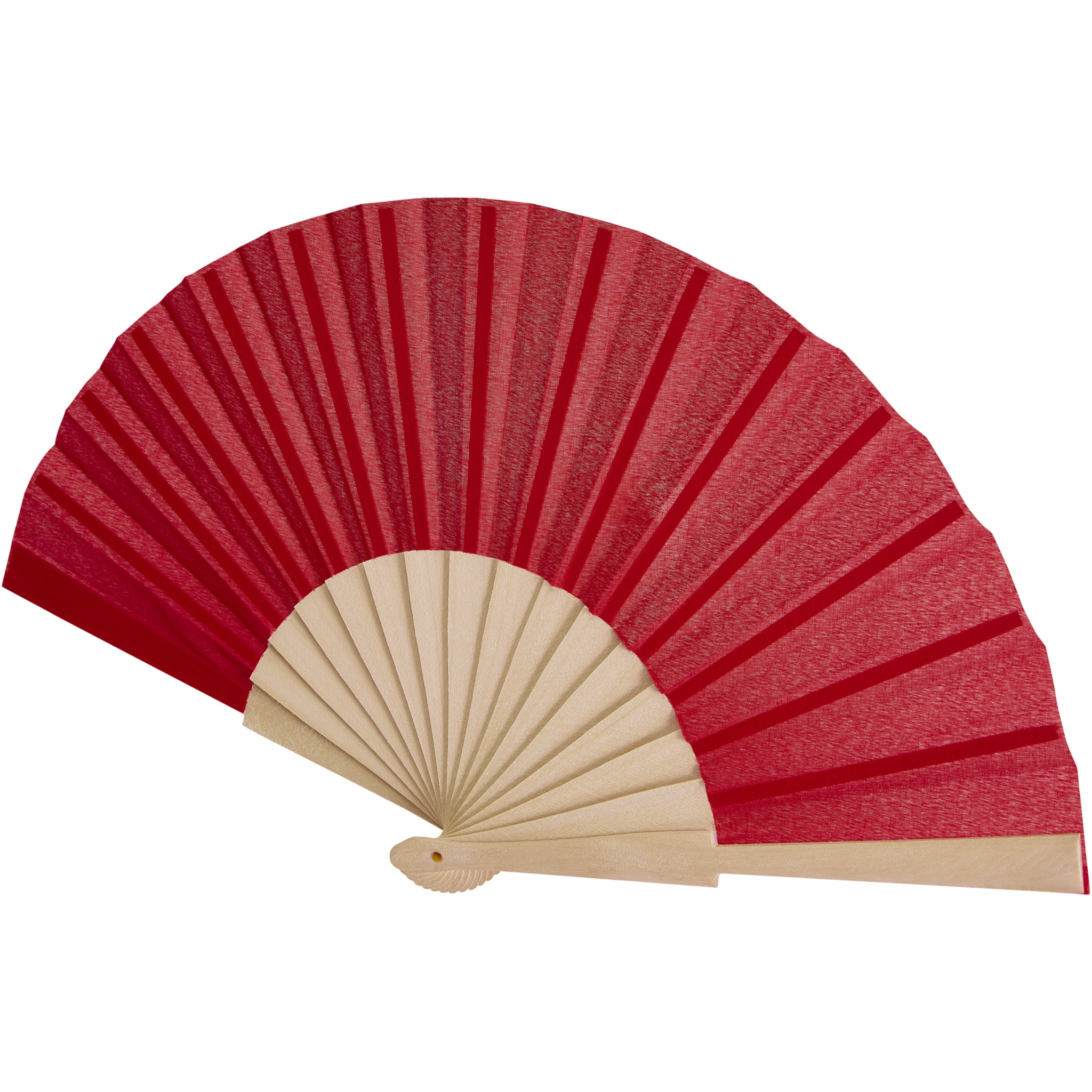 Hand fan made from wood and polyester, available in a wide range of colours.