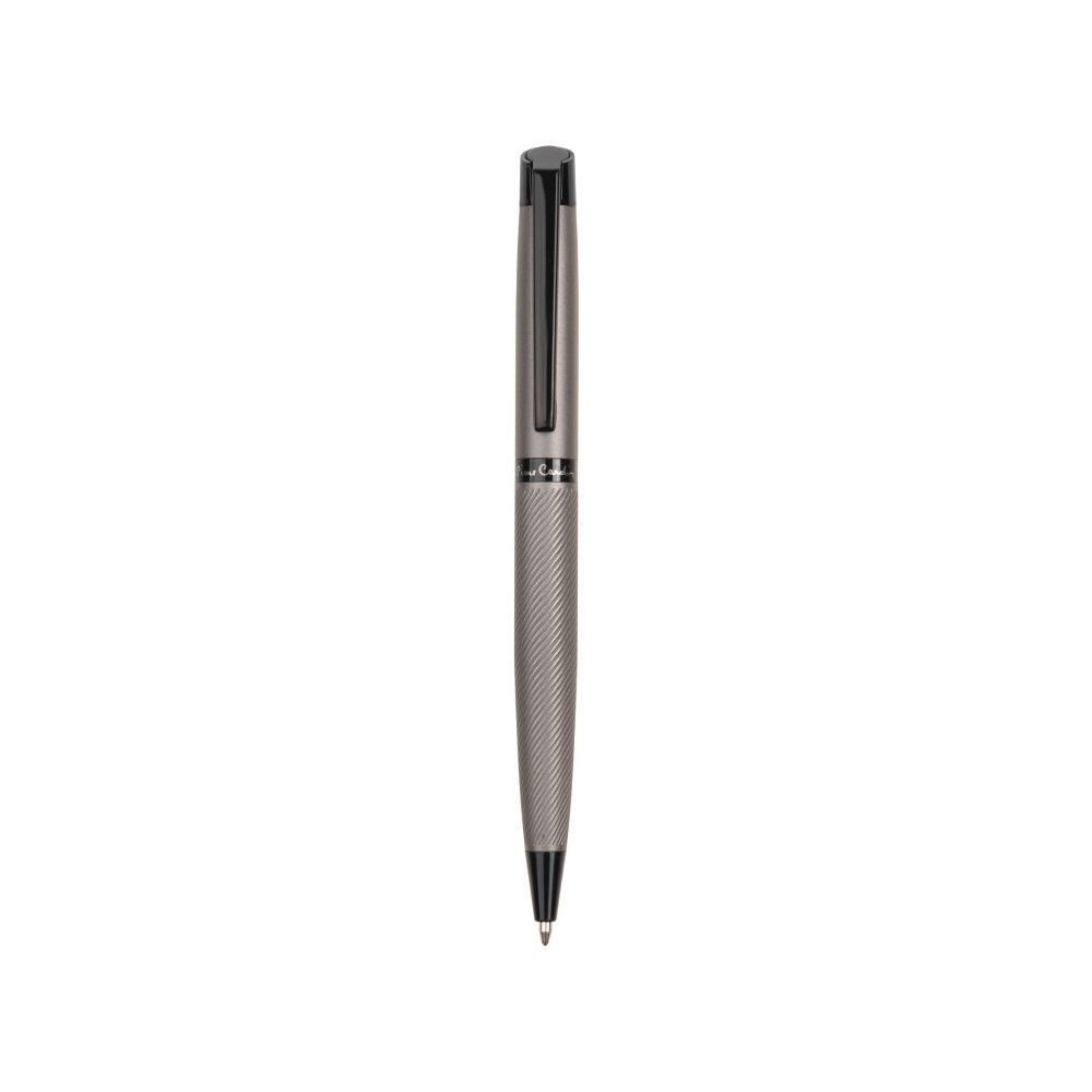 An elegant Pierre Cardin metal ballpoint pen. The pen has a rotating mechanism and the lower part of the pen is decorated in a structural design. It is offered in four colours with black accessories. It contains a quality blue refill with a 1 mm tip. Packed in a luxury pocket, comes with a certificate of authenticity.