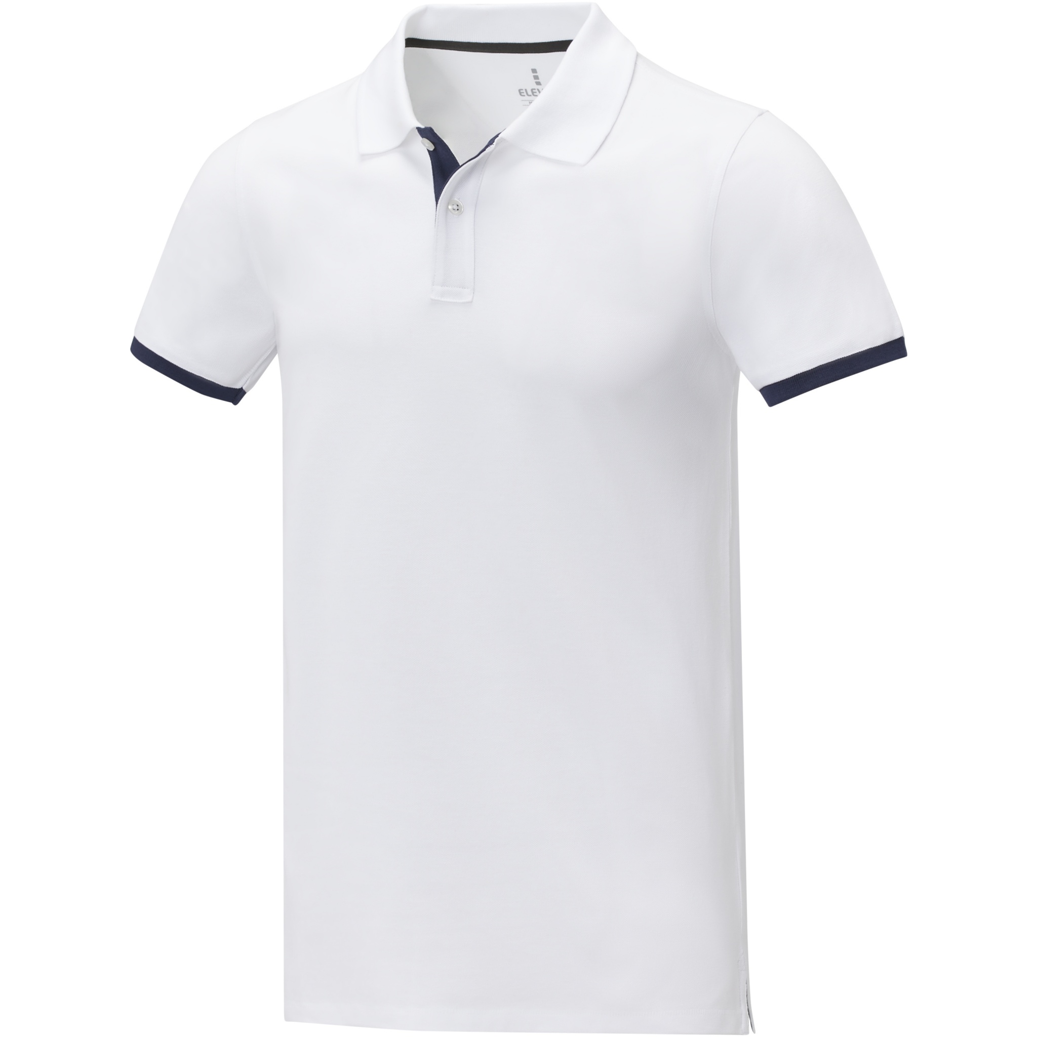 The Morgan short sleeve men's duotone polo is a stylish and comfortable option for any casual or business setting. Made from a 200 g/m² piqué knit cotton fabric, this polo is both durable and breathable. Featuring a flat knit collar and rib cuffs with contrast colour detailing, this polo offers a modern twist on a classic design. The two-button placket and pick-stitch details add an extra touch of sophistication, and the satin neck tape and heat transfer main label provide comfort and ease of wear.