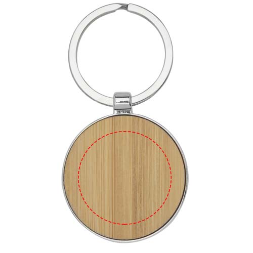 Premium quality round keychain made of bamboo with zinc alloy metal casing, supplied into a brown recycled Kraft paper envelope. The diameter of the keychain is 4 cm. Made for laser engraving.