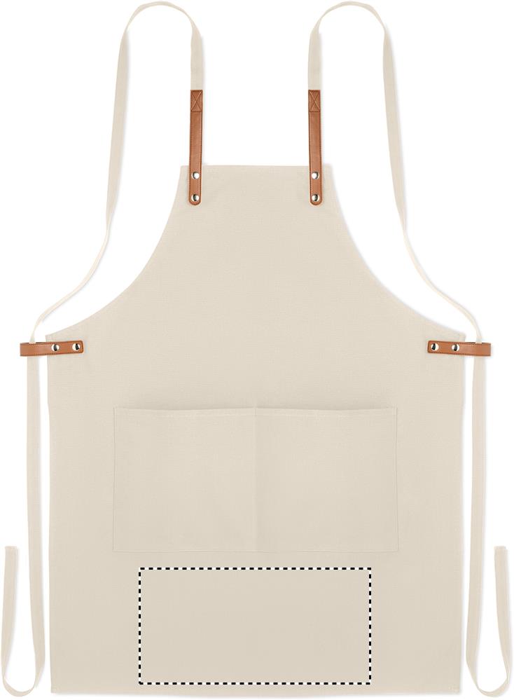 Adjustable kitchen apron with 2 front pockets in 340 gr/m² organic cotton/canvas.