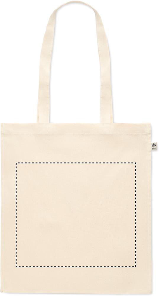Organic cotton shopping bag with long handles and gussets. 140 gr/m².