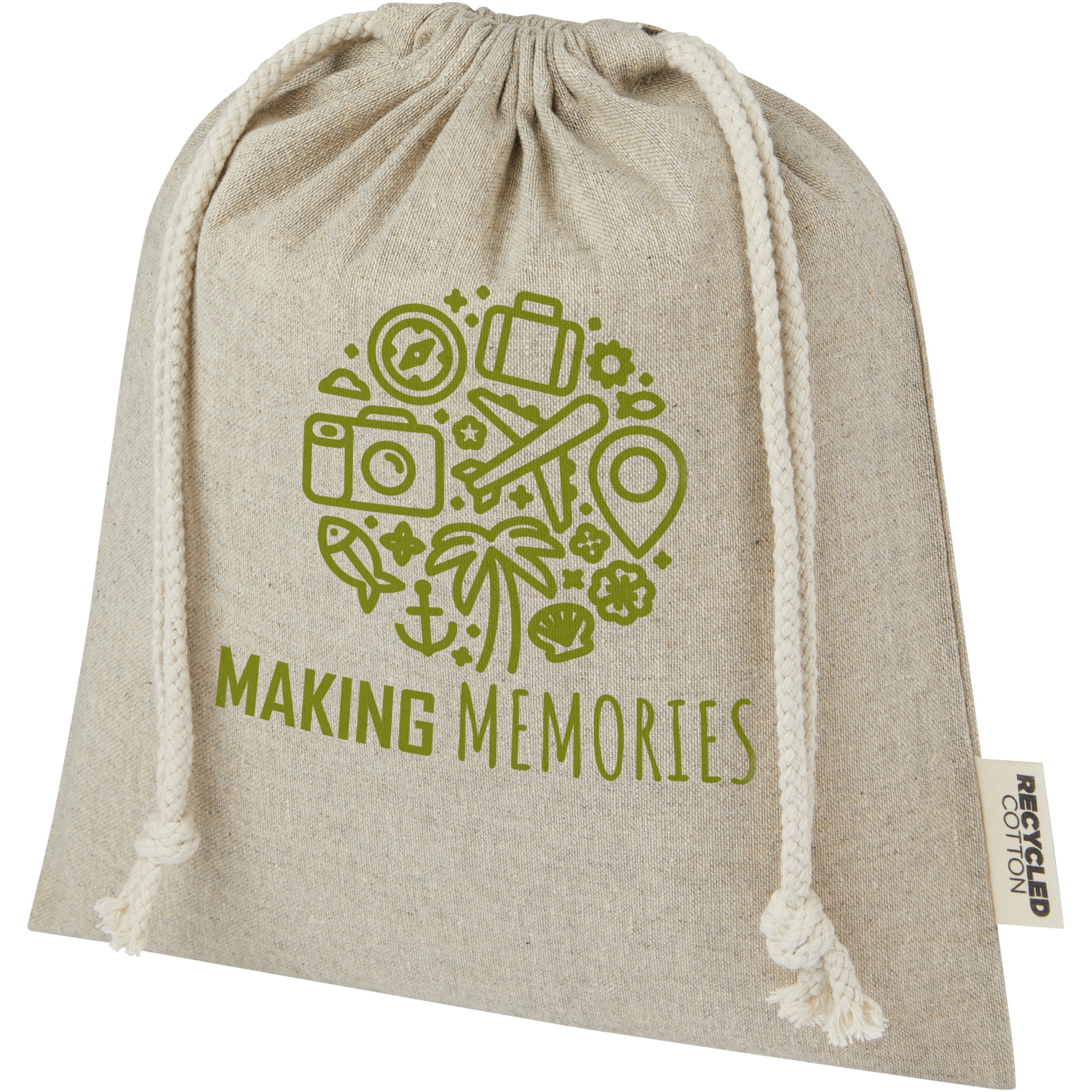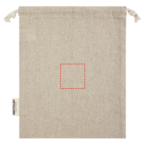 Gift bag made of GRS certified recycled cotton with cotton drawstring closure. Ideal for gifting or storing items. Size: 25 x 30 cm. There may be minor variations in the colour of the actual product due to the nature of the production process.
