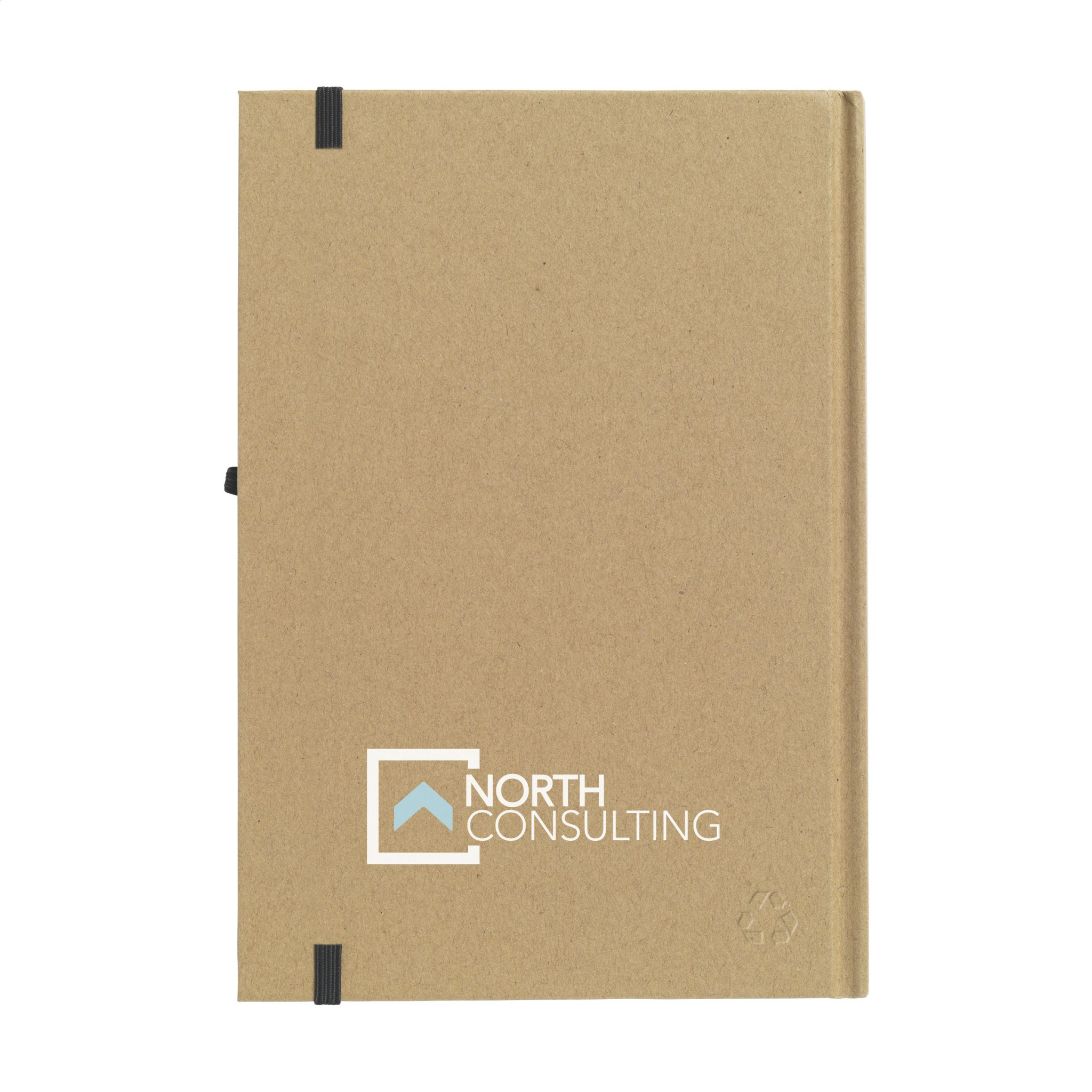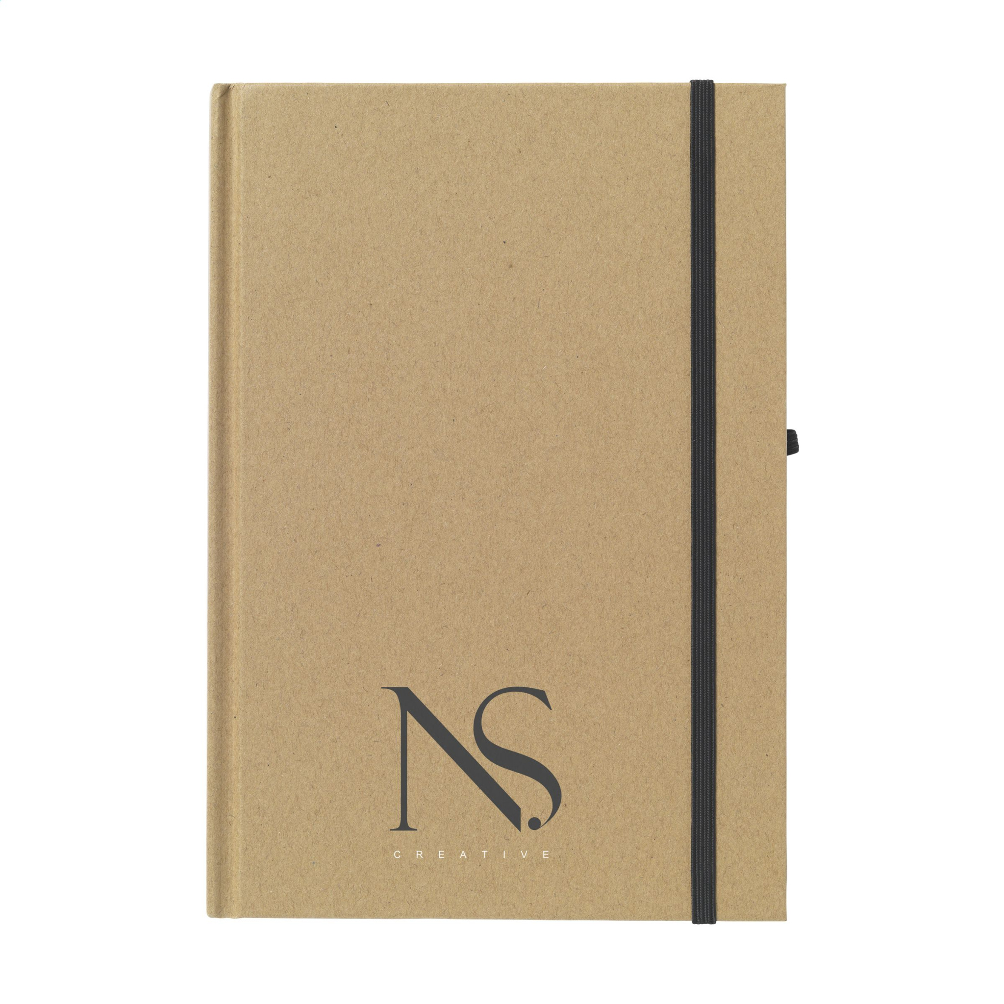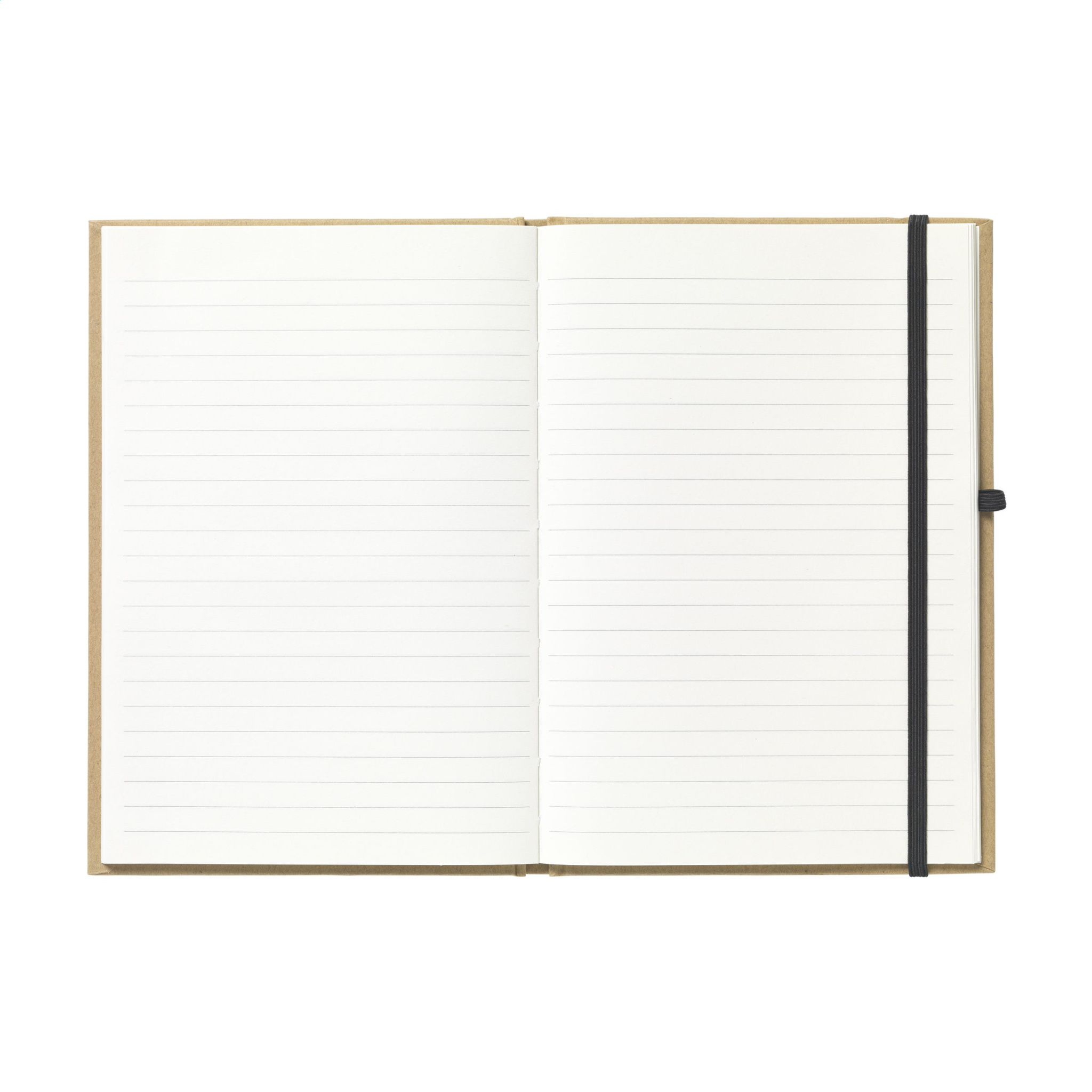 A5 size notebook made from recycled material. With approx. 80 sheets/160 pages of cream-coloured, lined paper (70 g/m²), handy pen loop and elastic closure.