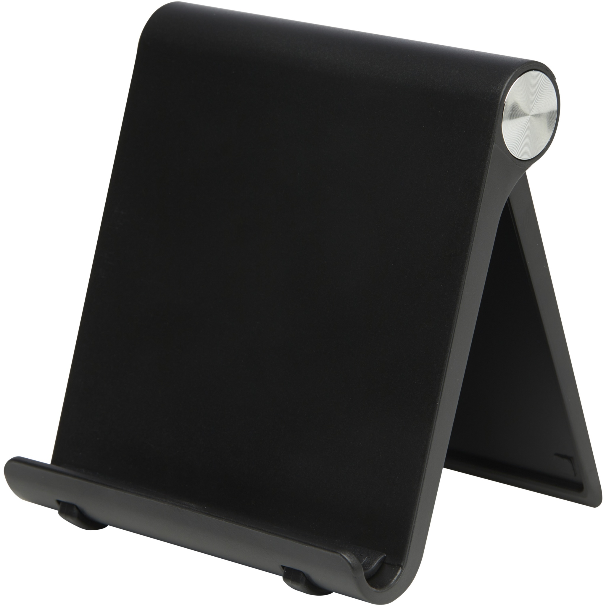 Phone and tablet stand compatible with all major phones and tablets that are less than 12mm thick, including iPhone, iPad, Samsung Galaxy / Tab, Google Nexus, HTC, LG, Nokia Lumia, and OnePlus. The stand is easily adjustable for multiple viewing angles. Large print area on the front panel.