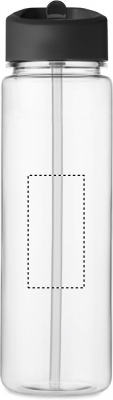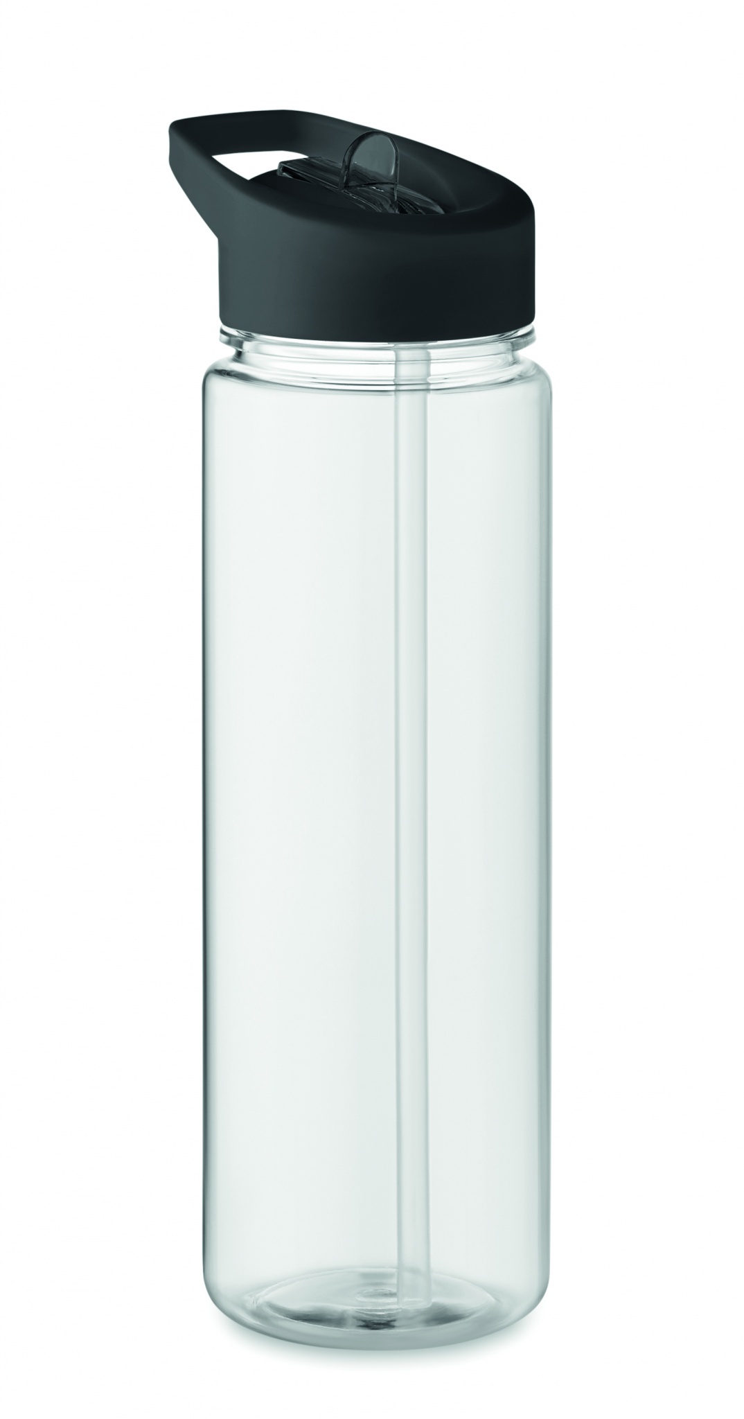 Drinking bottle in RPET and PP flip-top lid with straw. Capacity: 650ml. Not suitable for carbonated drinks.