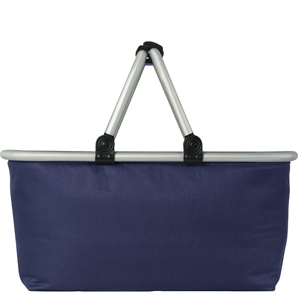 Shopping basket with aluminum frame in different colors, your shopping made easy. We print your logo on one side,