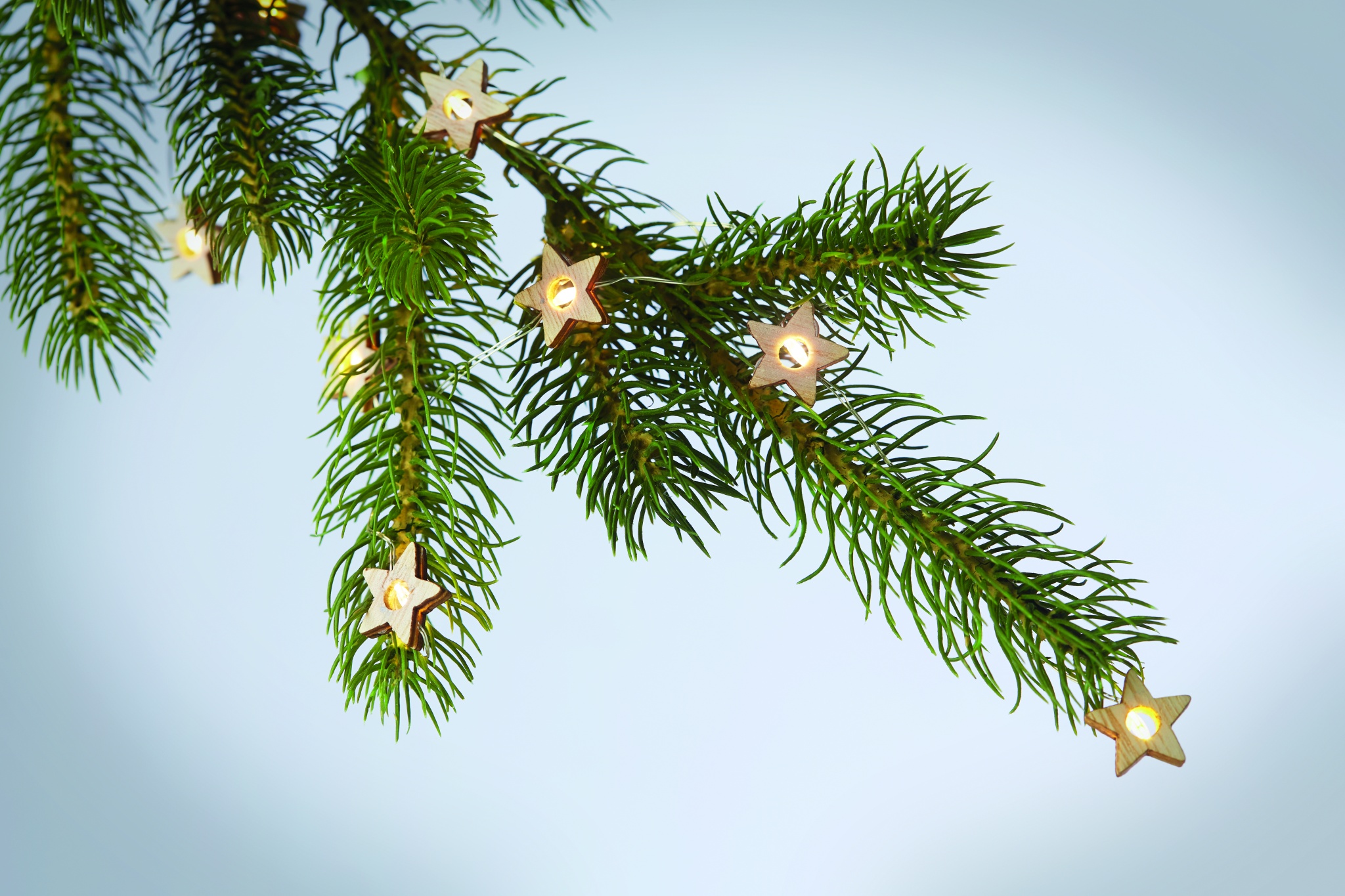 String with 20 star lights, Wood