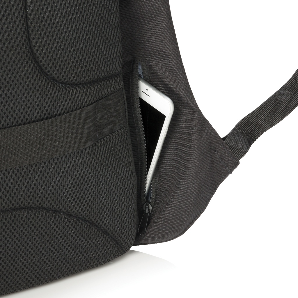 This Swiss Peak anti-theft 15.6” laptop backpack is a stylish option for your every day commute. The hidden zipper closures and secret pockets will keep all your belongings safe. Connect your powerbank easily to the integrated USB charging port and charge your phone or tablet on the go. Stay visible at night thanks to the reflective safety strips. With luggage strap. With AWARE™ tracer that validates the genuine use of recycled materials. Each bag has reused 24.4 0.5L PET bottles. 2% of proceeds of each AWARE™ product sold will be donated to Water.org. PVC free. Registered design®
