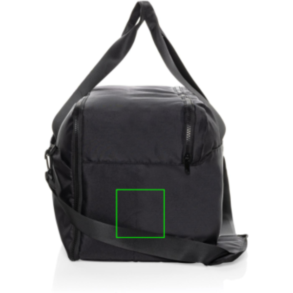 Your standard business Swiss Peak weekend bag with 15"6 inch laptop compartment for all your short business trips. Made with Aware™ RPET 300D/150D. Main compartment has additional pockets and an zipper pocket on the inside. Rigid zippers