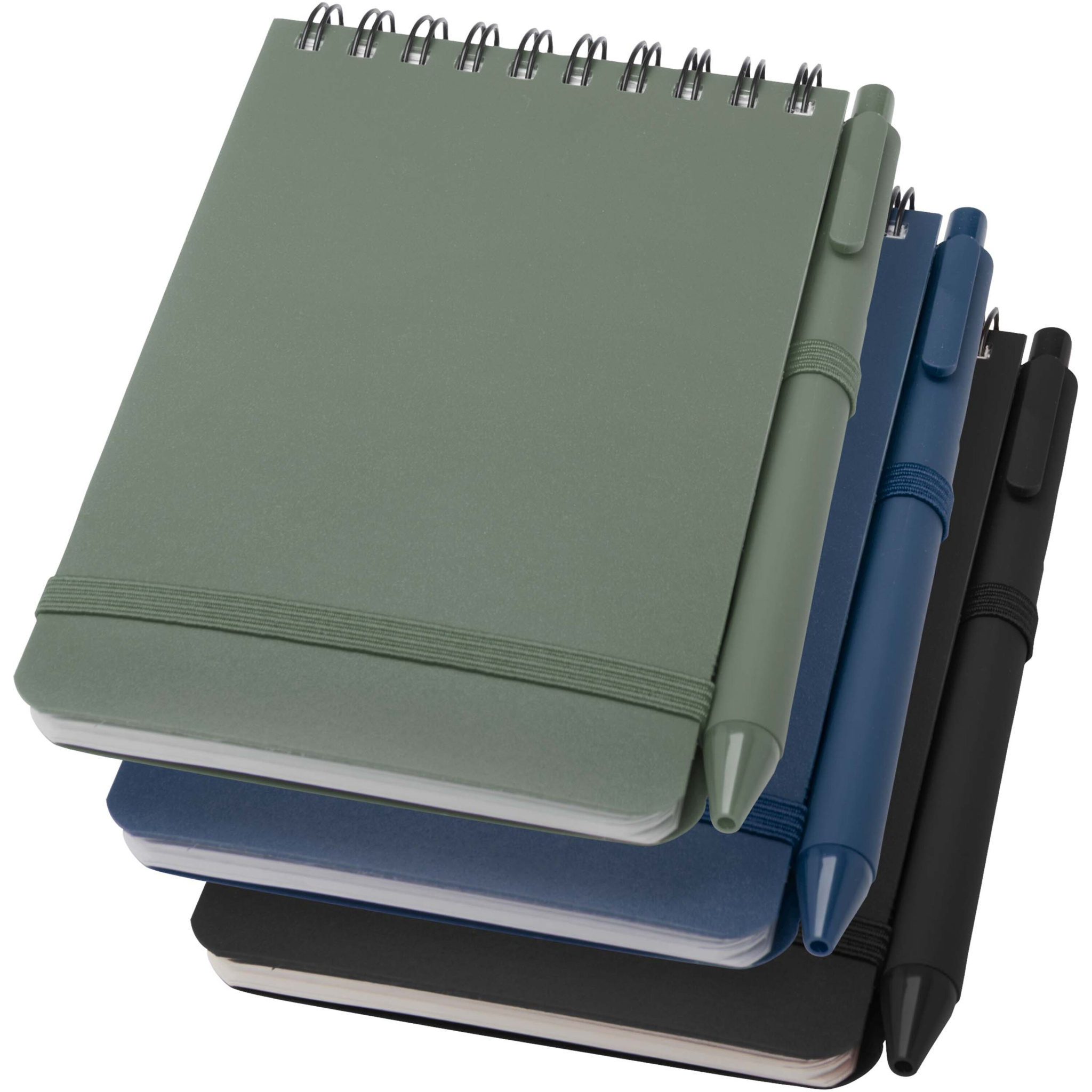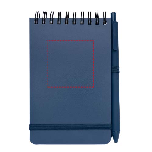 The Thalaasa A6 hard cover notebook is made of ocean bound recycled plastic with 80 lined sheets of 70 g/m² cream coloured paper. The notebook has rounded corners, an elastic closure, and a pen loop. The ballpoint pen with black ink is also made of ocean bound recycled plastic. Writing length: 1000 metres. Nib size: 1.0 mm.
