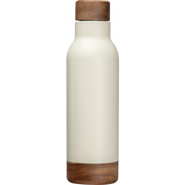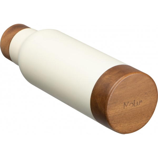 Double-walled thermal bottle made of recycled stainless steel with acacia wood cap and bottom. Capacity 630 ml