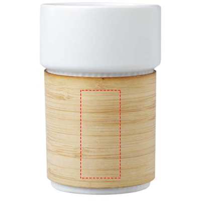 The stylish Fika ceramic tumbler comes with a removable bamboo sleeve that is ideal to use when drinking hot beverages. The bamboo used comes from sustainable, environmentally friendly and socially responsible sources. Volume capacity: 340 ml. Delivered in a recycled cardboard box.