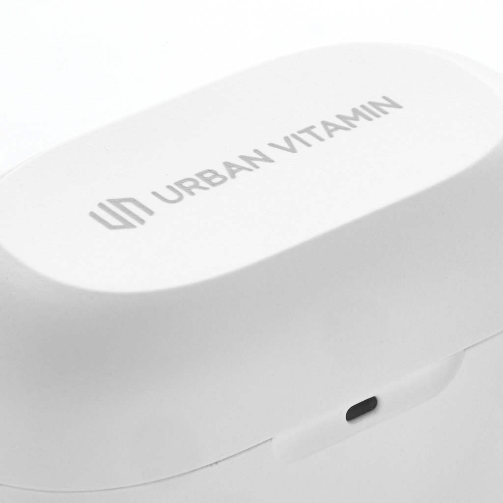 When you open the case and put in the earbuds, the intense bass hits you. How can an item so compact and portable deliver such rich and deep sound? The earbuds and portable charging case are designed to be able to carry no matter where you go and fit easily into your pocket. The comfortable earbuds have up to 5 hours of listening time and the charging case allows up to 20 hours of playback. Enough to keep you going all day! When receiving a call simply answer it in stereo sound thanks to the 2 integrated microphones. With the integrated touch control function you only have to tap the earbud to answer in crystal clear quality. The IPX 5 rating makes the earbuds weather, sweat and splash proof so no worries to take them outside. Urban Vitamin items are made without PVC and packed in plastic reduced packaging.