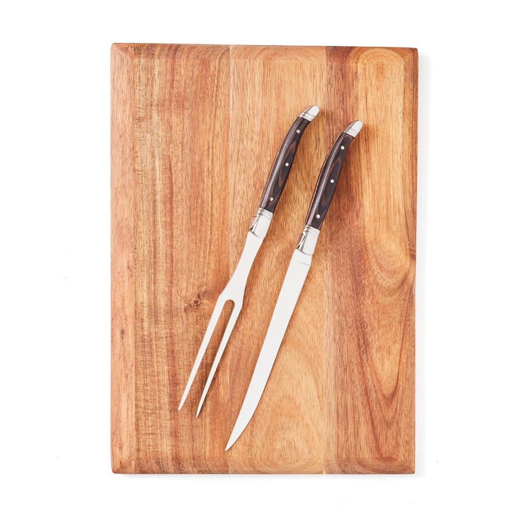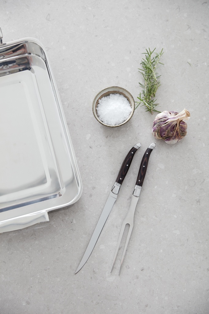 Trancher set with knife and fork in typical French-inspired bistro style. Black pakka wood handle and high-quality stainless steel blades. Packed in an exclusive gift box.