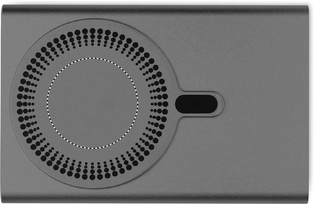 Magnetic wireless charger (15W) in recycled aluminium and power bank (5000 mAh). Output: DC 9V/1.66A. Supports quick charging technology (20W). In/Output: Type-C. Power delivery (PD) support to charge the newest laptop MacPro®. In/Output: Type-C.