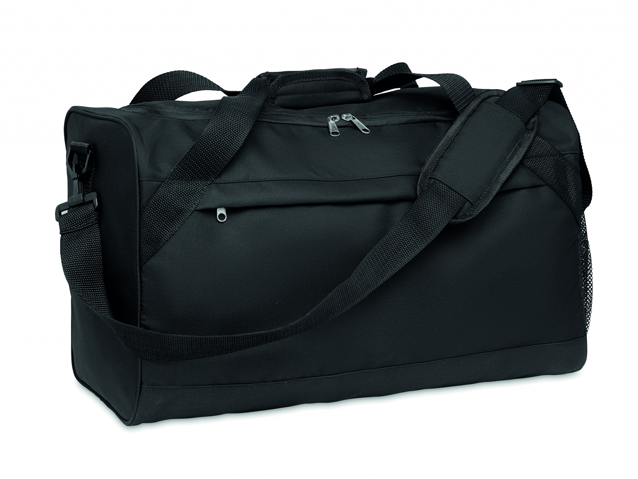Spordi- või reisikott 600D RPET-ist suure lukuga esitasku, lukuga sisetasku ning reguleeritava ja eemaldatava õlarihmaga.
