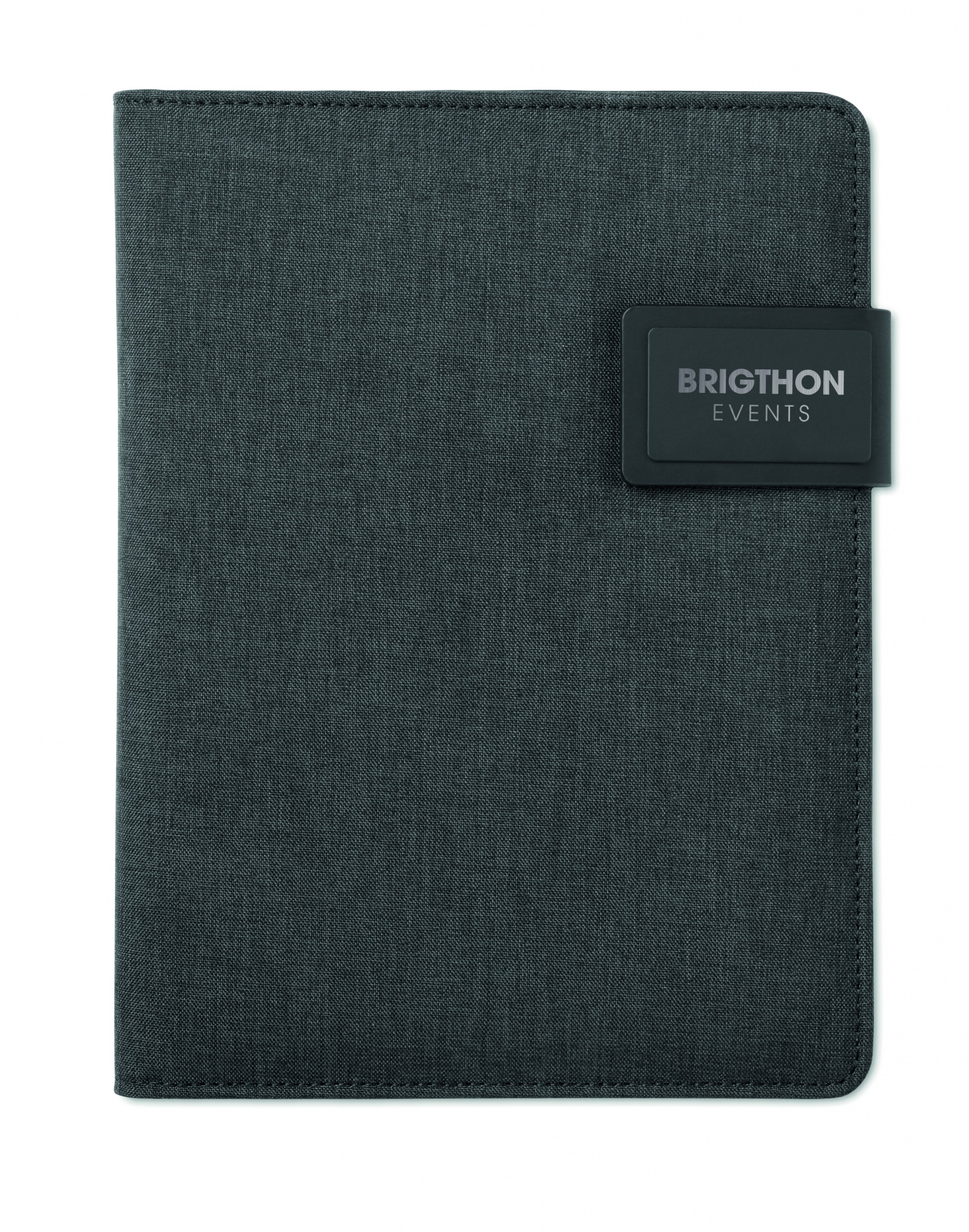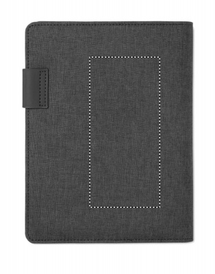 A5 konverentsimapp PU-nahast kaantega. Kaasas 4000 mAh akupank. Sisseehitatud mikro-USB C-tüüpi pistik,  20 joonelise lehega märkmi, mitu sisemist sektsiooni, magnetiline sulgur, elastne pliiatsihoidja.