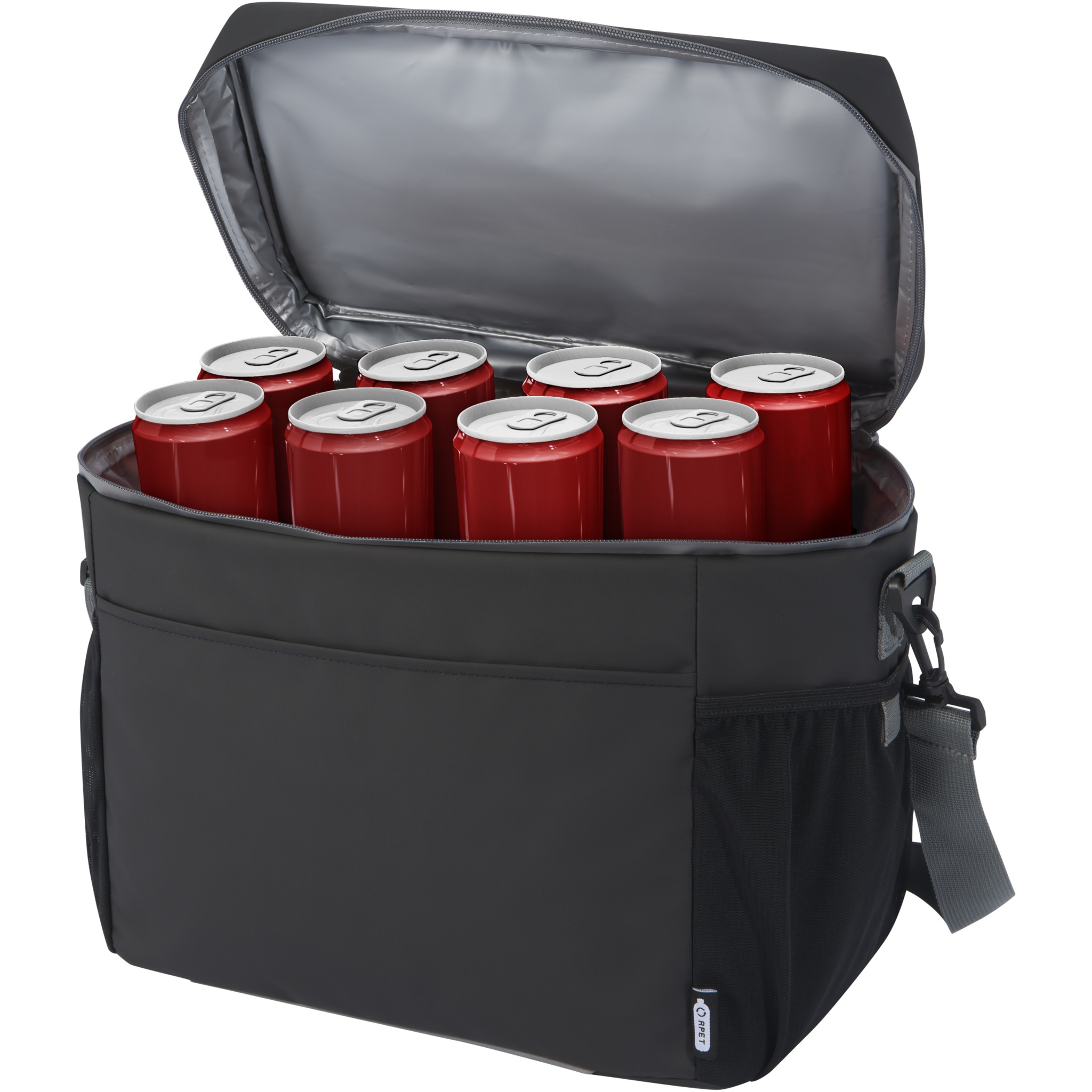 Veekindel 20 purki sisaldav külmakott, mis on valmistatud GRS-i sertifikaadiga taaskasutatud materjalidest, sealhulgas tõmblukud. Sellel on avar lukuga sahtel, mis on vooderdatud toidukindla ja eriti paksu suure tihedusega termo-PEVA- ja vahuisolatsiooniga, mis hoiab joogid ja karastusjoogid tundideks külmana. Sellel on ka 2 võrktaskut ja üks avatud esitasku täiendava hoiustamiseks. Rihmaga kandesang ning reguleeritav ja polsterdatud õlarihm muudavad selle kaasaskandmise mugavaks. GRS-i taaskasutatud materjalide hulka kuuluvad põhikangas, vooder, vöö ja tõmblukud. Mahutavus: 22 liitrit. PVC vaba.