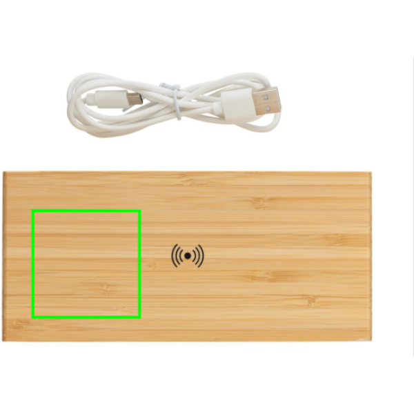 Logo trade meene pilt: Bambusest äratuskell 5W juhtmevaba laadijaga