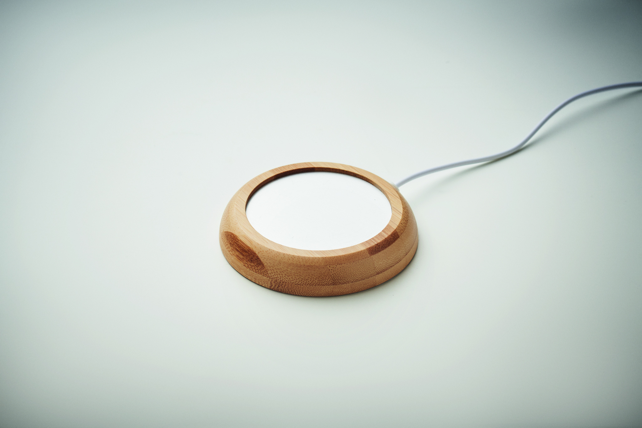 Bambusest kruusisoojendaja. Hoiab jooke soojas kuni 45ºC. Sellel on USB-ühenduskaabel.