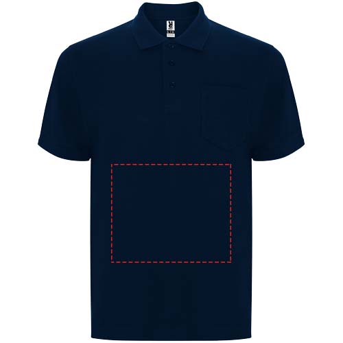 Lühikeste varrukatega polosärk taskuga vasakul rinnal. Krae ja kätised detailidega 1x1 soonikust kangast. 3-nupuline plokk. Tugevdatud kaetud õmblused kraes. Eemaldatav etikett. Pillimisvastane ravi.