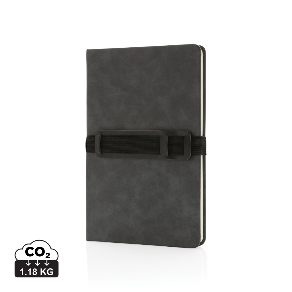 Logotrade meened pilt: Deluxe kõvakaaneline PU-märkmik A5 telefoni ja pliiatsihoidjaga