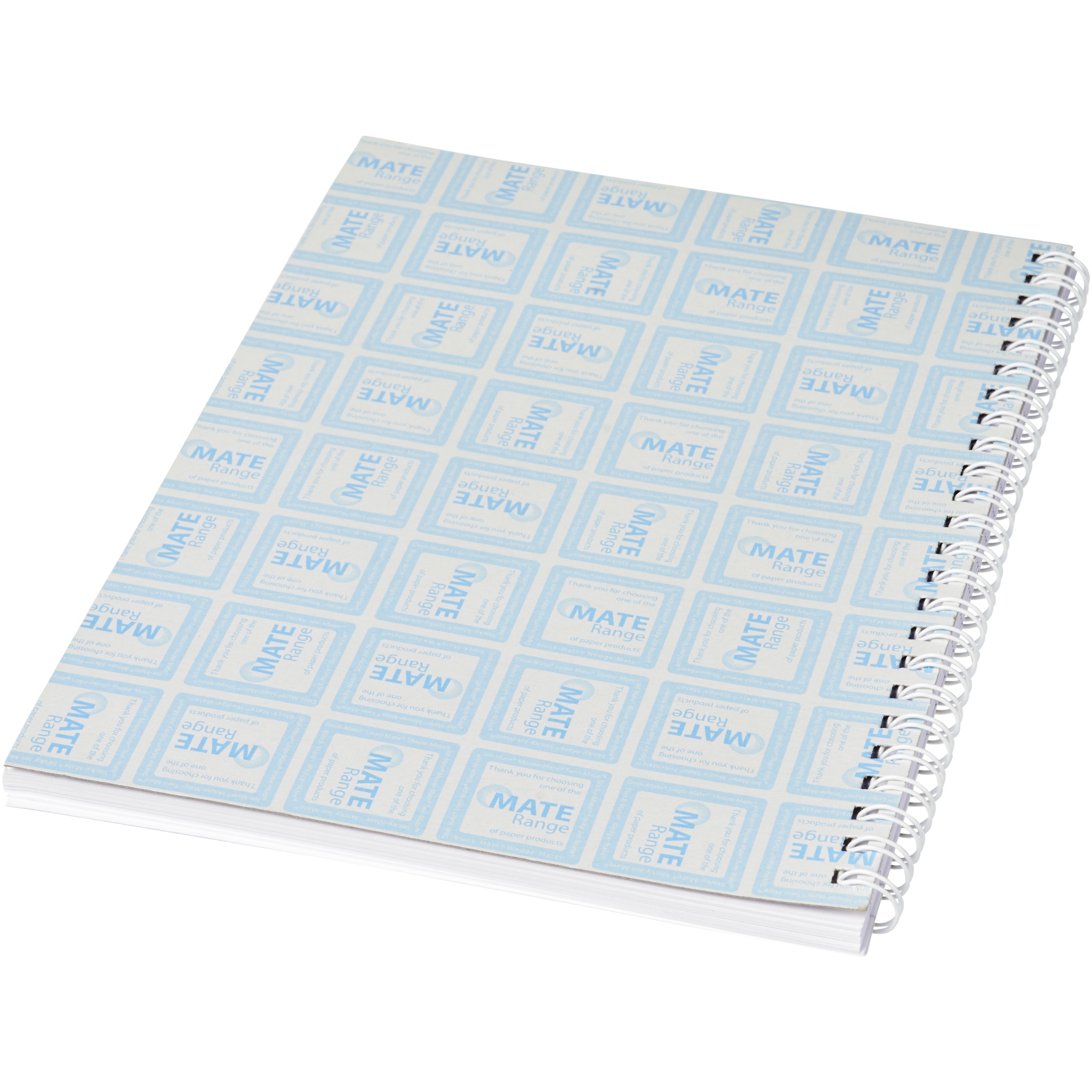 Desk-Mate® A4 märkmik spiraalköitega. Märkmikul on läikiv kartongist esikaas (250 g/m2), valged leheküljed (80 g/m2). Standardköide on 50 lehega, saadaval ka 80 lehega. Saate kohandada selle mitmekülgse märkmiku lehti mis tahes kujundusega – nii et olenemata sellest, kas soovite joonelist paberit, ruute või punkte – kõik on võimalik!