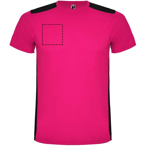 Kergesti kuivav, tehniline ja hingav kangas. Meeskonna kael. Kahe polüesterkanga kombinatsioon seljal ja õlgadel. Ees linnusilma kangas ja taga hingav 3D võrkkangas. Niiskuse imamiseks ettevalmistatud kangas. Dekoratiivne siksakiline seljapiste külgedel ja õlgadel. Seljamuster veidi pikem. Eemaldatav etikett.