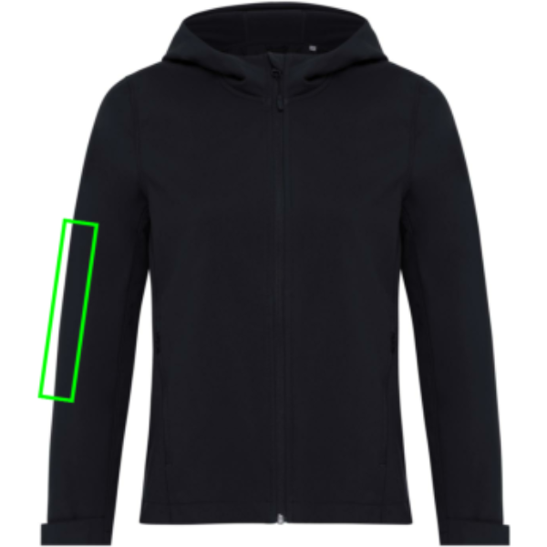 Naiste keskmise istuvusega softshell jakk, mis on valmistatud taaskasutatud polüestrist, 300 G/M² 3-kihilise kangaga, mille sees on kasutatud taaskasutatud TPU membraani ja pehmet mikrofliisi. Jopel on ees ümberpööratud tõmblukk ja küljepaneeli õmblustes lukuga taskud. Sellel on reguleeritav kapuuts, mille sisemised korgid on parema kaitse tagamiseks. Varrukate mansetid on reguleeritavad takjakinnitusega. Läbimõeldud lisatõmbluku tõmbaja ja puhas siseviimistlus taaskasutatud köitega. Jope on vetthülgav BIONIC-FINISH® ECO-ga (kangas on taaskasutatud TPU membraaniga kuni 5000mm veekindel). Tuulekindel ja hingav kuni 3000g/m2/24h. Ehtsate ringlussevõetud materjalide kasutamine ja keskkonnamõju väited on garanteeritud, kasutades AWARE™ häirivat füüsilist jälgimisseadet ja plokiahela tehnoloogiat. QR-koodi skannides saate juurdepääsu spetsiaalsele digitaalsele passile. 2% iga müüdud toote tulust annetatakse veebisaidile Water.org. Sellel tootel on OEKO-TEX® STANDARD 100 sertifikaat. Saadaval ka meestele sobivad.