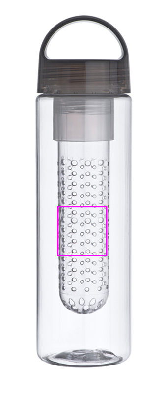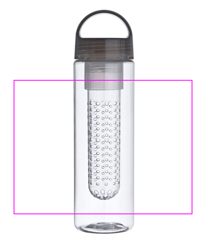 Plastikust joogipudel infusiooniga (nt) puuviljade jaoks ja mahutavusega 650ml. Trükime teie logo pudelile.